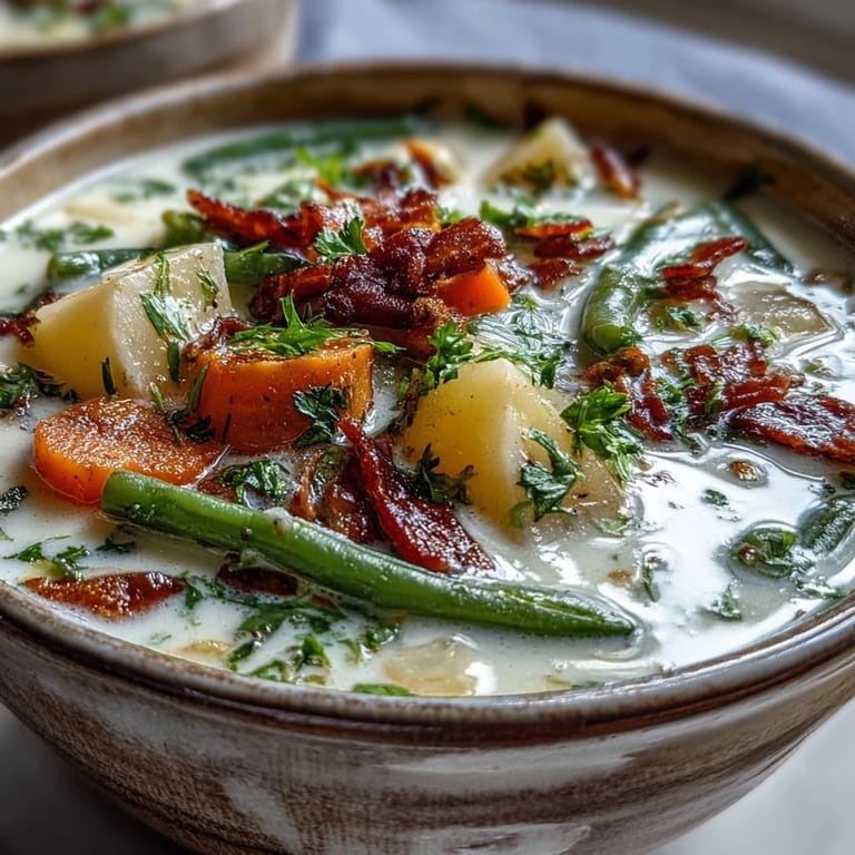I've swapped out the green beans for peas, added a handful of chopped kale in the last few minutes of cooking, and even stirred in cooked shredded chicken for extra protein. My cousin once added a pinch of smoked paprika and a splash of hot sauce, which gave the soup a subtle kick that we all loved. The beauty of this recipe is that it's forgiving and adaptable, so you can use whatever vegetables you have on hand and it will still turn out warm and satisfying.