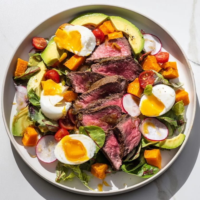 Pin it I once made this bowl for someone who swore they didn't like salad, and watching them scoop up a piece of beef with an avocado slice, yolk running golden over everything—that's when I knew this wasn't a salad at all. It was just a really satisfying way to eat well.