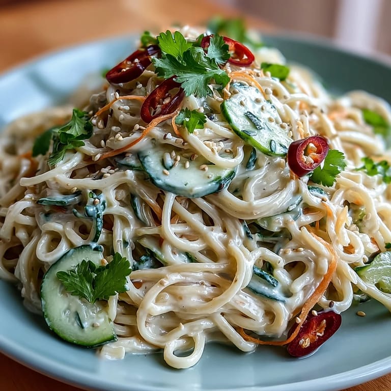 I first made this for a friend who popped in unexpectedly during a heatwave, and we ended up eating it sitting cross-legged on the kitchen floor, marveling at how refreshing cold noodles could be. The sesame aroma seemed to hang in the air long after we'd finished, and we both agreed that it was the perfect antidote to sticky, humid afternoons. Ever since, it's been my go-to for spontaneous lunches and relaxed dinners with friends, often garnished with whatever herbs are thriving on my windowsill.