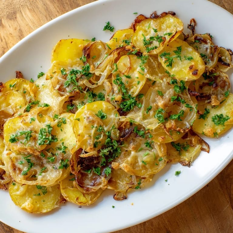 Save There's something about the way caramelized onions transform in a hot pan that never gets old—that slow sweetening, the deepening color, the kitchen filling with this golden, almost honeyed aroma. One autumn evening, I was making French onion soup for guests, but halfway through realized I didn't have enough broth, so I pivoted to layering those glossy onions over roasted potatoes instead. What emerged from the oven was unexpected: crispy potato edges, melted Gruyère bubbling across the top, and every bit of that soup's soul packed into a single, simpler dish. It became something I make now whenever I want that comfort without the fuss.