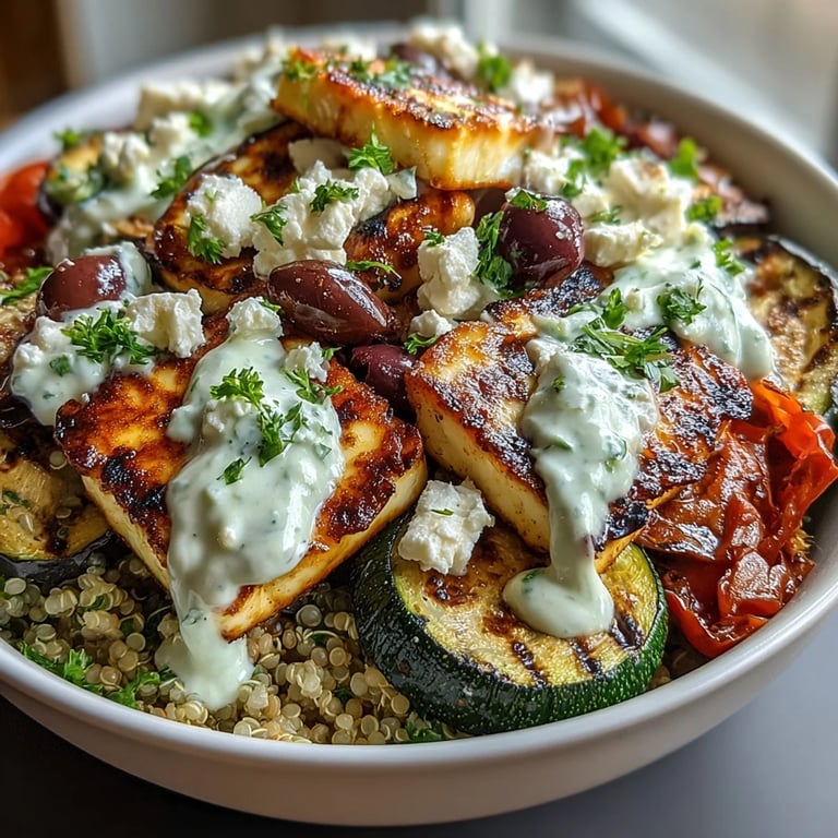 I made this the first time I had vegetarian and non-vegetarian friends coming over at once. I panicked until I realized halloumi could sit on the same grill as chicken without anyone feeling like an afterthought. Both sides of the table went quiet for a solid ten minutes. One friend scraped her bowl so loudly I thought she'd crack the ceramic.