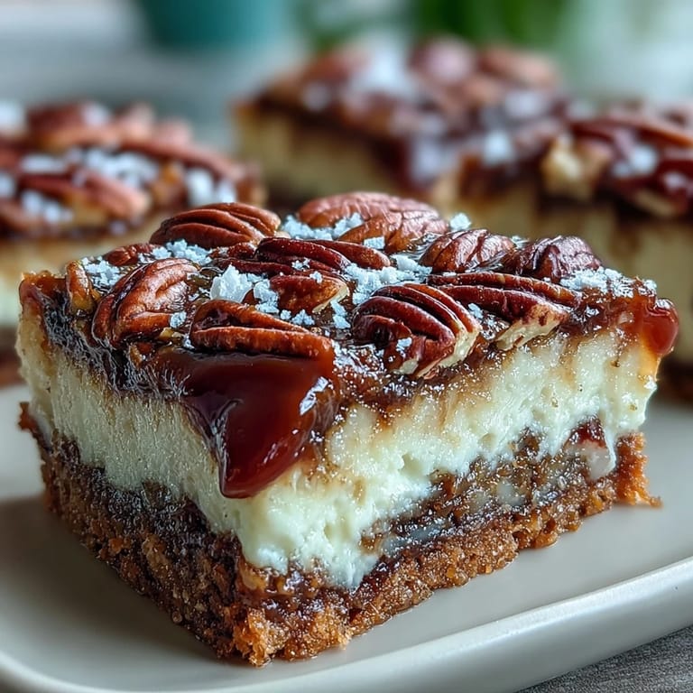 Save My aunt pressed a bourbon bottle into my hands one May afternoon, insisting these bars were the only way to celebrate Derby Day properly. The kitchen filled with the smell of toasting pecans and caramel, and I watched her layer that buttery shortbread with such confidence that I knew I had to master it myself. Now, every spring when the flowers start blooming, these bars are what I reach for—that perfect balance of crispy, gooey, and utterly Southern.