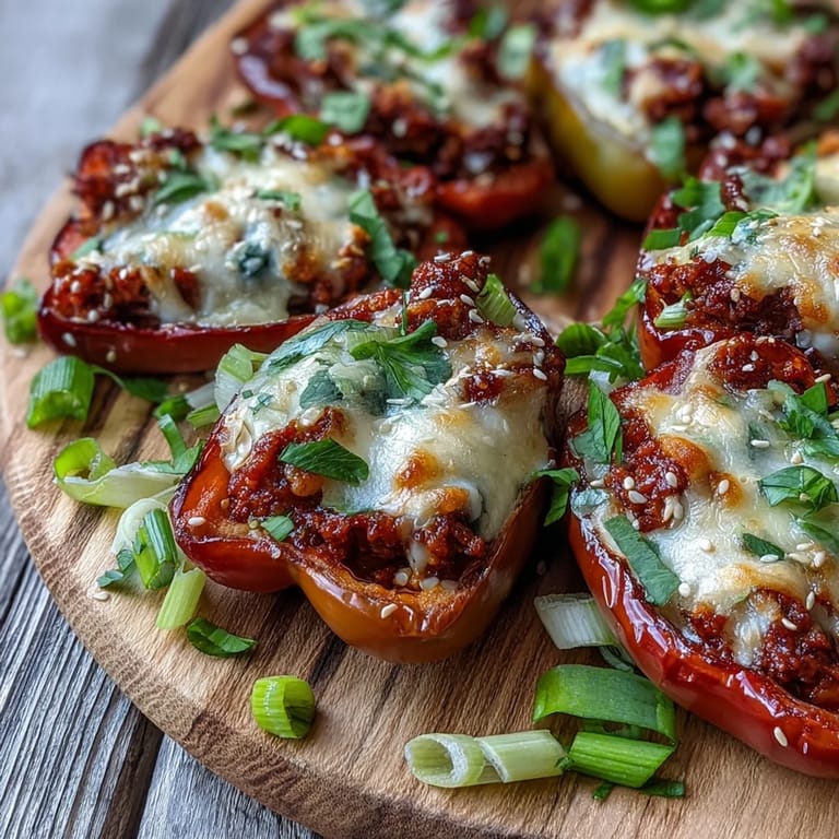 Save These Korean-Style Turkey Stuffed Sweet Peppers bring vibrant Korean flavors to a colorful and nutritious dish that's perfect for a weeknight dinner. The combination of savory ground turkey seasoned with aromatic gochujang, soy sauce, and sesame oil creates a delicious filling for sweet mini peppers, while the melted mozzarella adds a creamy, indulgent finish. This fusion recipe takes the concept of stuffed peppers and infuses it with the bold, complex flavors of Korean cuisine.