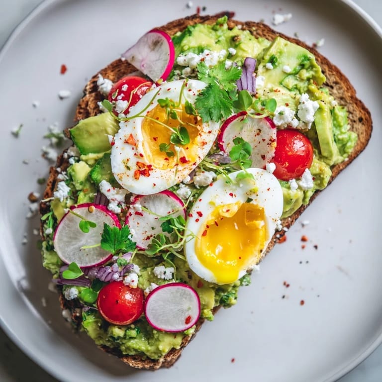 Every component serves a real purpose here instead of just sitting on the plate looking pretty. The creamy avocado and runny egg yolk create a natural sauce that coats everything, the fresh vegetables provide contrast and crunch, the feta adds a salty tang, and the toast holds it all together without falling apart. It's balanced in a way that keeps you satisfied without feeling heavy, which is why it works just as well for breakfast as it does for lunch when you're trying to eat something nourishing but still feel a little indulgent.