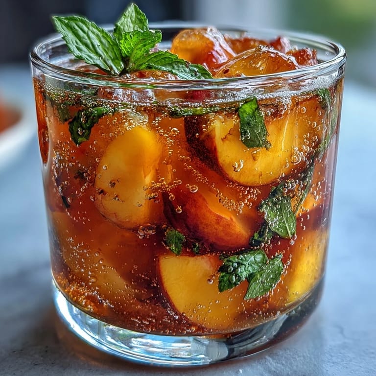 Save Sometimes, the sound of the blender whirring in summer afternoons signals that something fresh and fruity is about to happen. I remember casually tossing mango and peach into the pitcher, watching their colors swirl and thinking how perfect chilled tea would taste with them. The scent that filled the kitchen—sweet, tangy, and vibrant—almost seemed to promise a moment of escape from the heat. My friend popped in unexpectedly, asking what was smelling so good, so we ended up making extra. It became an impromptu centerpiece for our lazy sunny hangout.