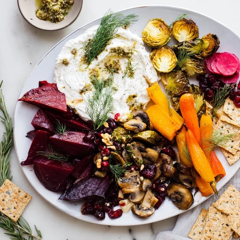 Save A stunning winter mezze platter inspired by the flavors and colors of a pine forest featuring robust flavors earthy vegetables and festive touches perfect for cozy gatherings.