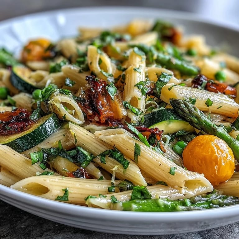 Save The first time I made Spring Pasta Primavera, I remember the sound of rain tapping against my window while I chopped vegetables, turning my kitchen into a riot of color. There was something oddly satisfying about watching asparagus and cherry tomatoes tumble across my cutting board, their freshness instantly lifting my mood. That day, I got playful with the herbs, trusting the scent of basil and parsley to guide me. My cat wandered curiously as I cooked, drawn by the tang of garlic sizzling in olive oil. Making this dish always feels like a celebration of what’s in season, an edible snapshot of spring’s energy.