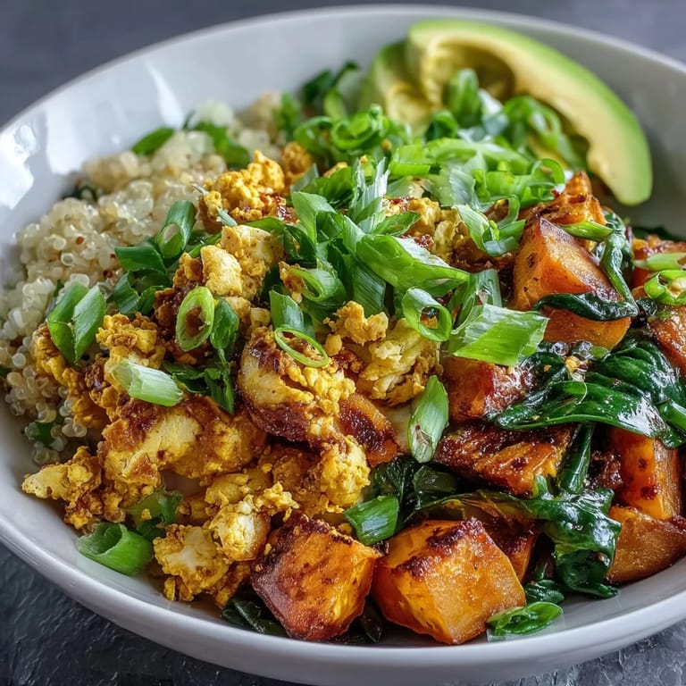 Save There's something grounding about standing in your kitchen on a lazy Sunday morning, watching golden cubes of sweet potato emerge from the oven while quinoa steams quietly on the stove. I discovered this bowl by accident, really—I'd made tofu scramble for dinner one night and had leftovers that felt too good to waste, so I threw together whatever vegetables were lingering in my crisper drawer. What emerged was this unexpectedly colorful, deeply satisfying breakfast that somehow makes waking up feel less like an obligation and more like an invitation.