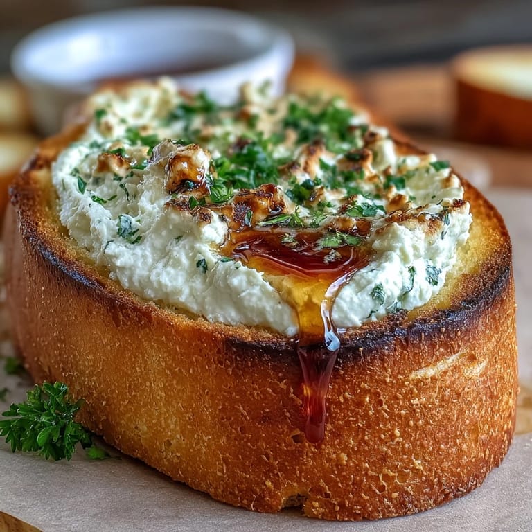 Save My friend texted me a photo of burnt garlic bread from her dinner party and asked if I had a fix. That moment sparked an idea: what if garlic bread could be elegant, creamy, and still deliver that crispy-golden finish everyone craves? Within an hour, I'd layered ricotta and garlic onto a baguette, and when I drizzled it with hot honey fresh from the pan, something magical happened. The kitchen filled with this warm, spicy-sweet aroma that made everyone stop mid-conversation. Now this is the appetizer I make when I want people to remember the meal before they even sit down.